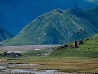 We refill water at Deka Hut and reward ourselves with coffee on the terrace of Café 360°. Then down past Gergeti Church and by early afternoon we are back in the village. With two spare days, we return to our proven accommodation with the panoramic terrace and plan excursions nearby.