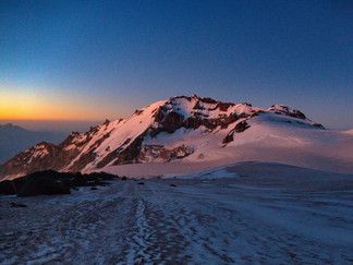 I wake shortly after three. Footsteps and headlamp beams flicker across the tent. The summit caravans are already moving towards the glacier. We eat calmly and depart within the hour. We want daylight on the glacier.